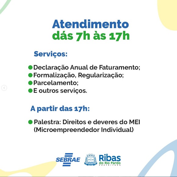 Na terça-feira, 27 de maio, microempreendedores individuais (MEIs) de Ribas do Rio Pardo terão a oportunidade de participar de uma programação especial repleta de atendimentos gratuitos e uma palestra exclusiva sobre os direitos e deveres do MEI.